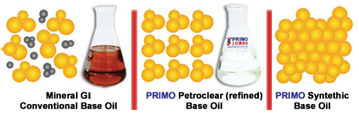 berbeda jauh kualitas dan performanya dibandingkan dengan Synthetic. ............................................................... SOLUSI dari PRIMO Lubricant : Walaupun PRIMO Lubricant menganjurkan konsumen tetap memilih pelumas Synthetic (tersedia di PRIMO SPECIALTY LUBRICANT), apalagi khususnya kondisi yang mengharuskan tetapi memahami kondisi harga Synthetic yang masih dianggap tinggi dan untuk mendapatkan kebutuhan pelumasan lebih baik dari Mineral Base Oil, PRIMO Lubricant memproduksi pelumas olinya dengan memakai base oil PETROCLEAR (High Refined Base oil) yang telah mengalami proses pemurnian berulang kali, keseragaman molekul sehingga penampakan warna base oil menjadi sangat bening seperti air, menunjukan bahwa zat "pengotor" telah dihilangkan, dampaknya mesin lebih bersih, oli lebih awet, additive di oli akan bekerja lebih maximal dan tahan lama. |